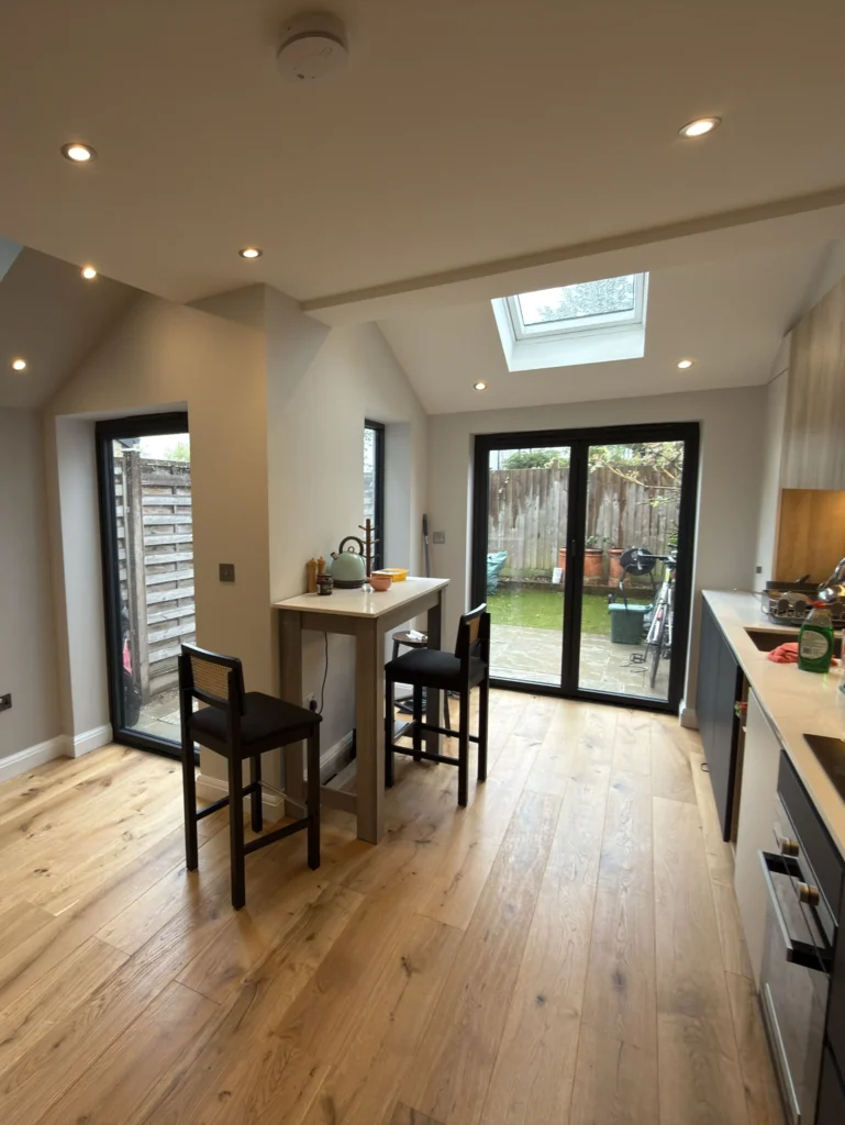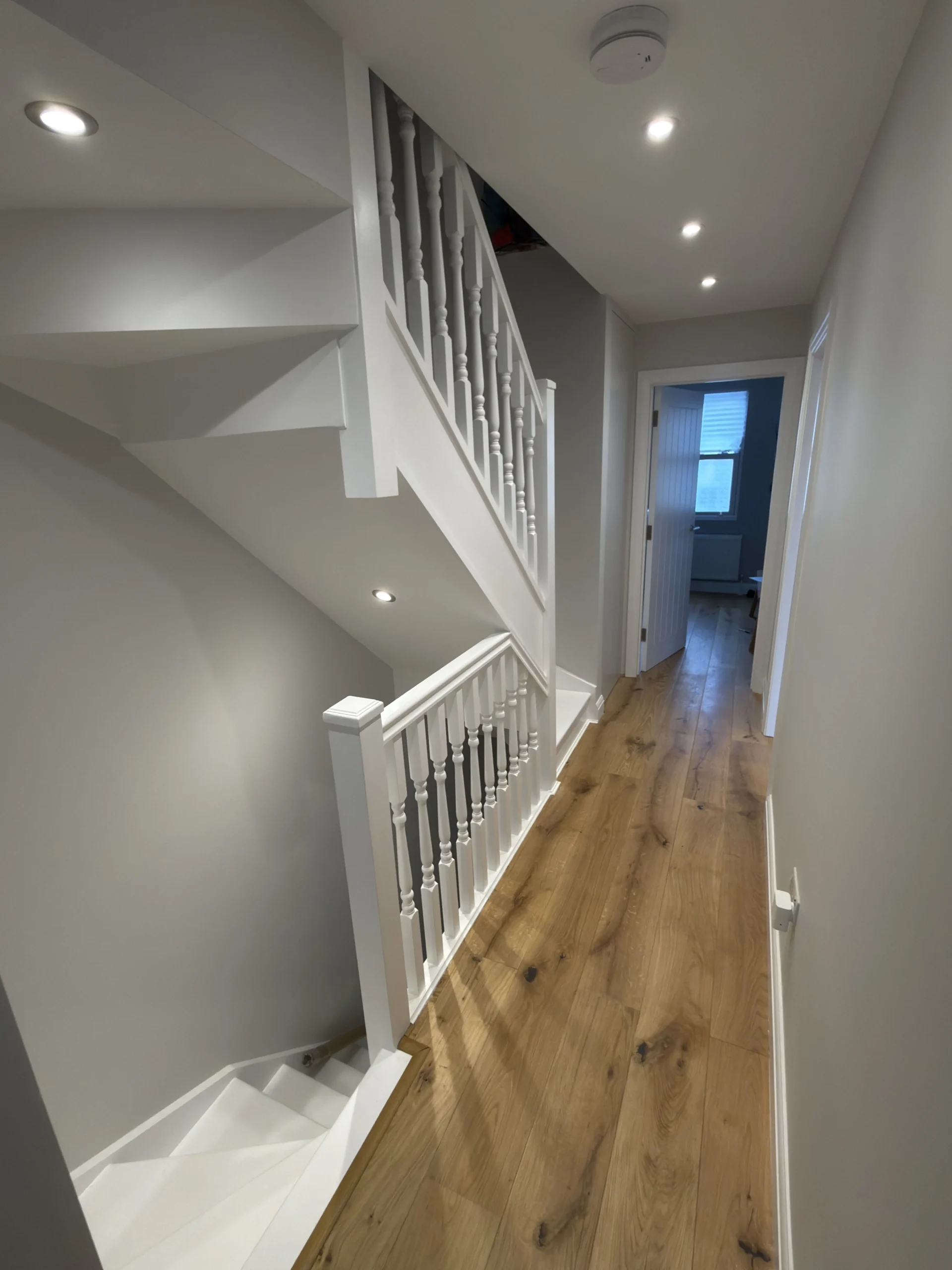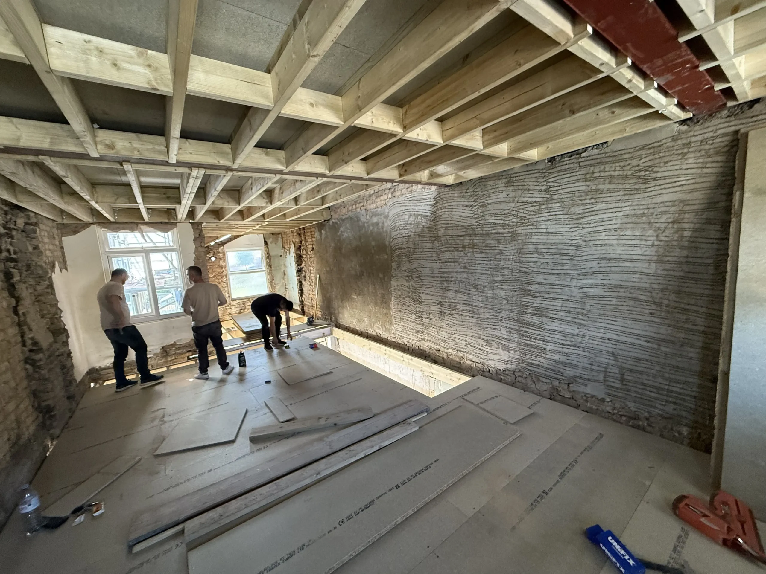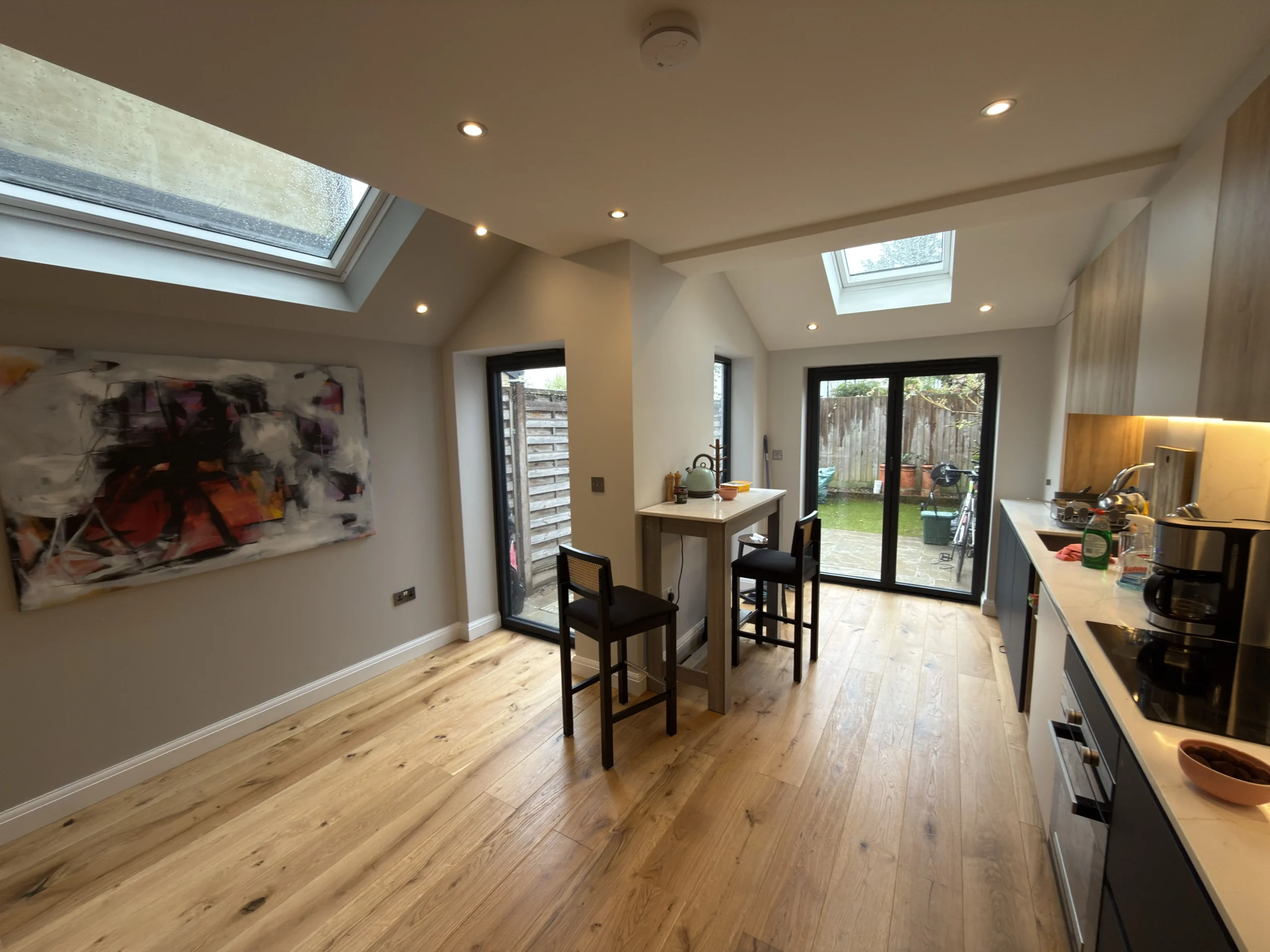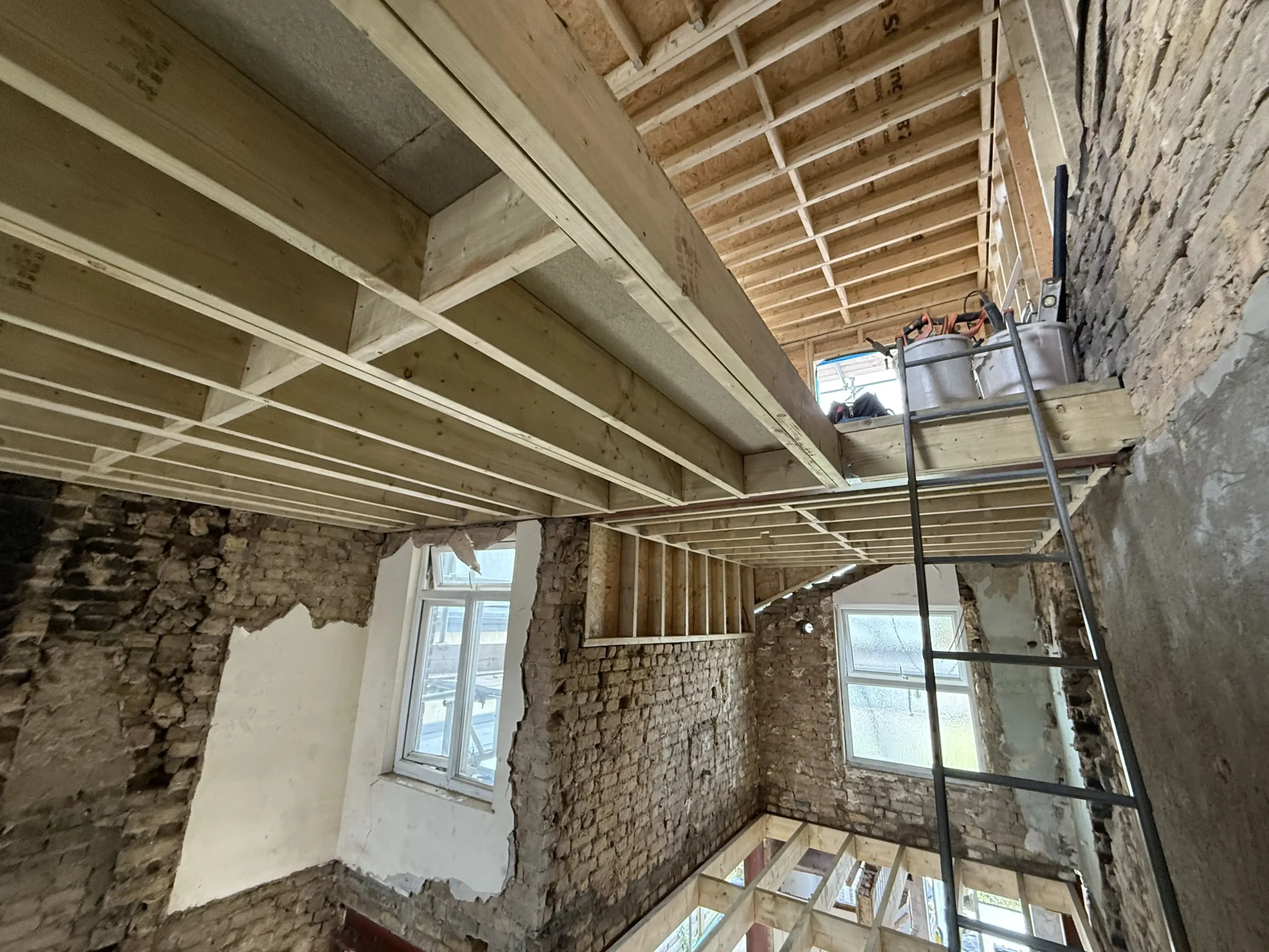 The works comprised a rear extension, loft conversion, and full internal refurbishment, including significant structural reconfiguration. Key elements included relocation of the ground floor staircase, replacement of the suspended floor with a new solid ground floor, and installation of structural steelwork to support the revised layouts.