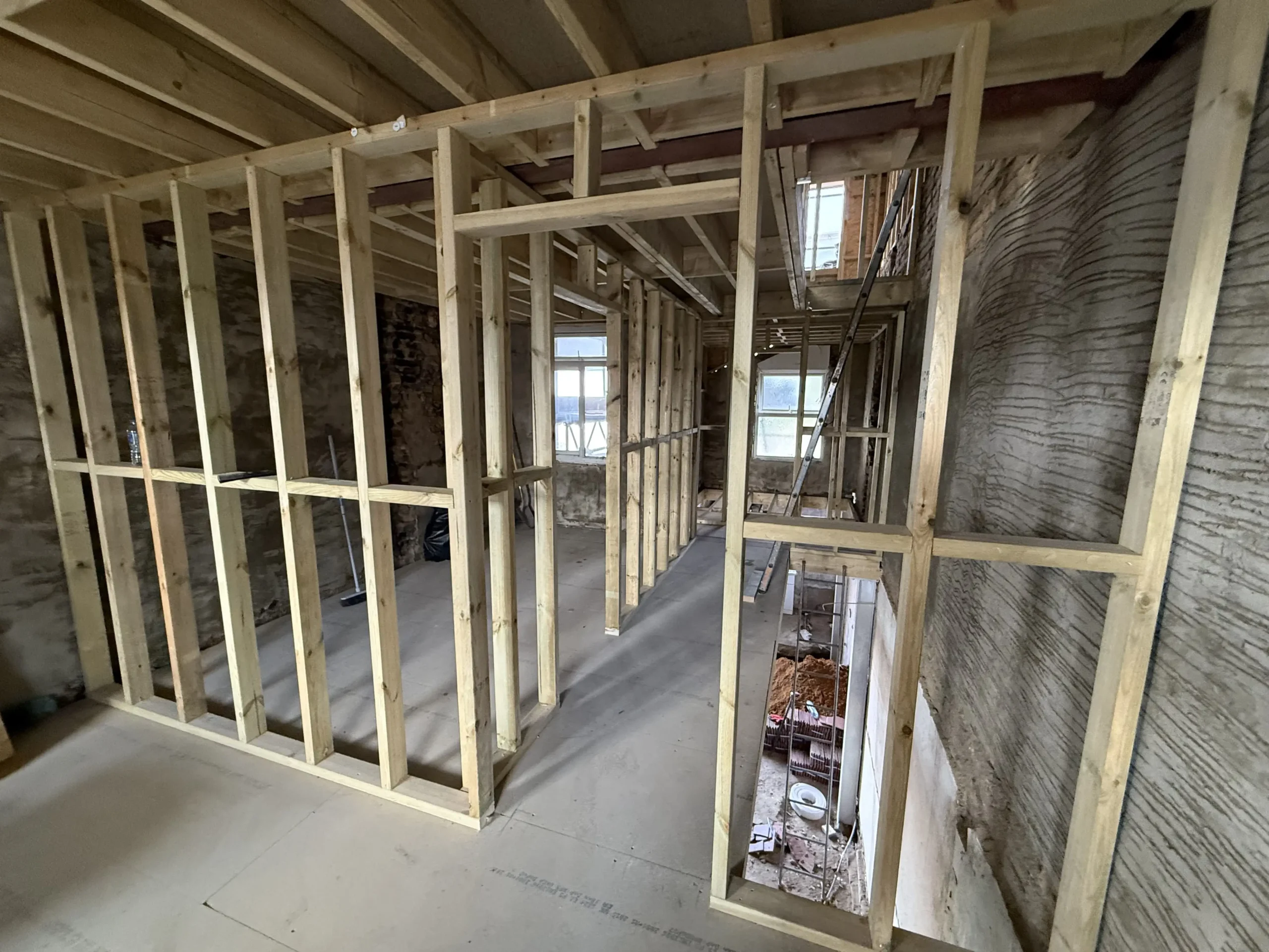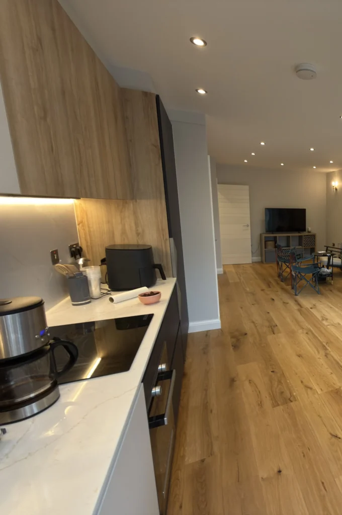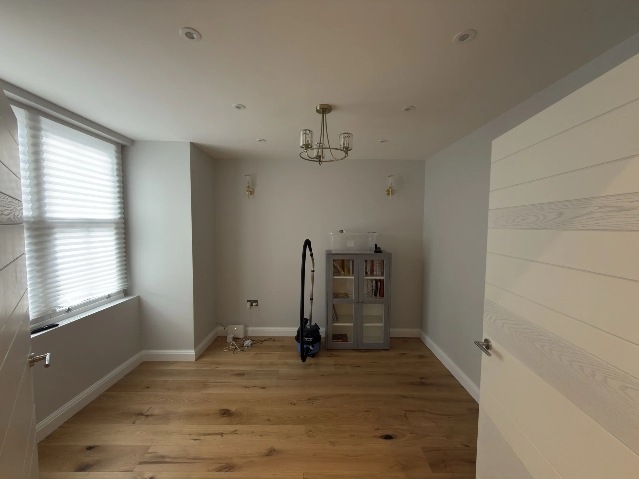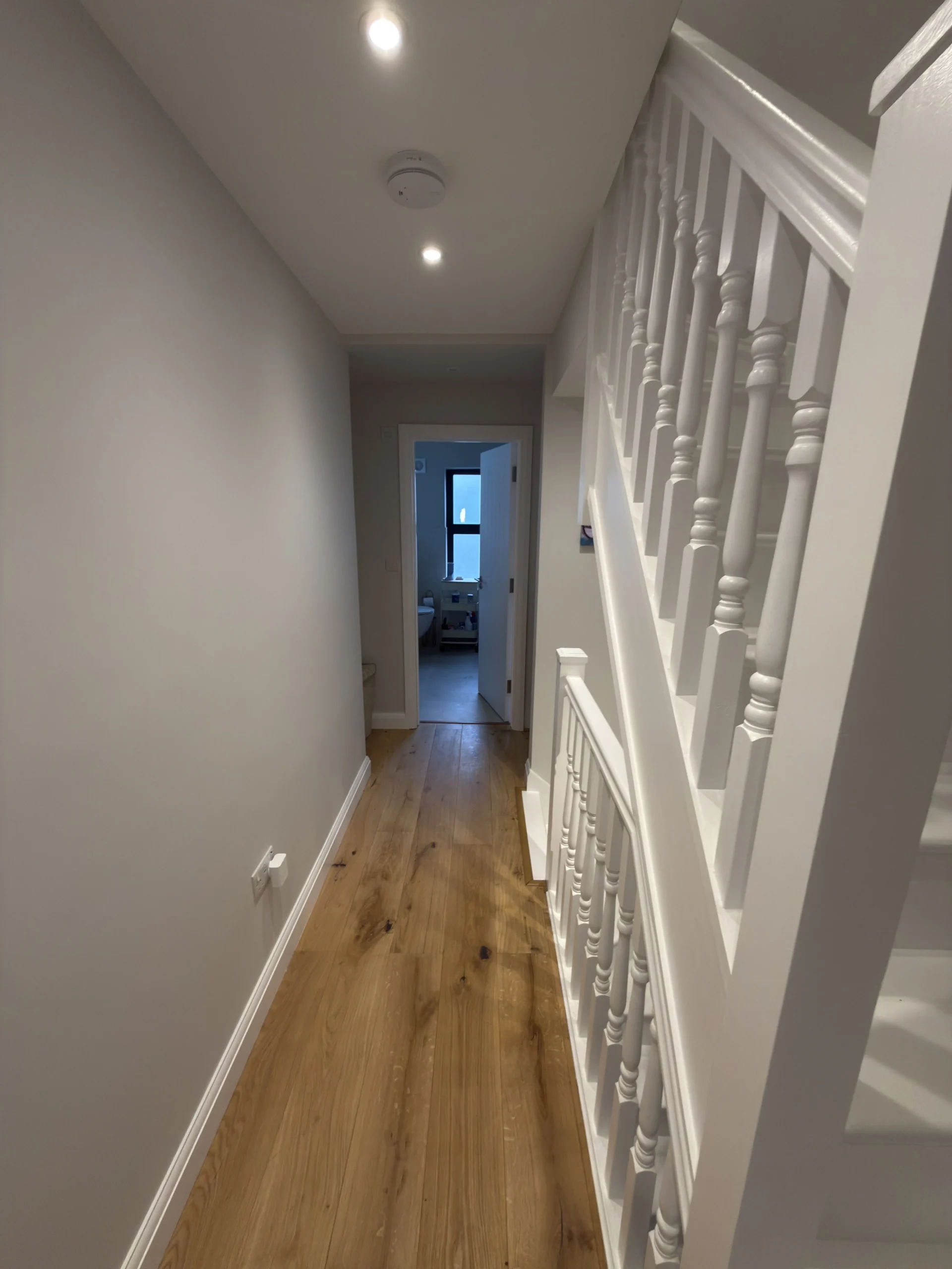 Externally, the property was upgraded with insulated external wall systems finished in silicone render, improving thermal performance and durability. Internally, a complete new plumbing and electrical installation was delivered to current UK standards, providing a safe and reliable services infrastructure.