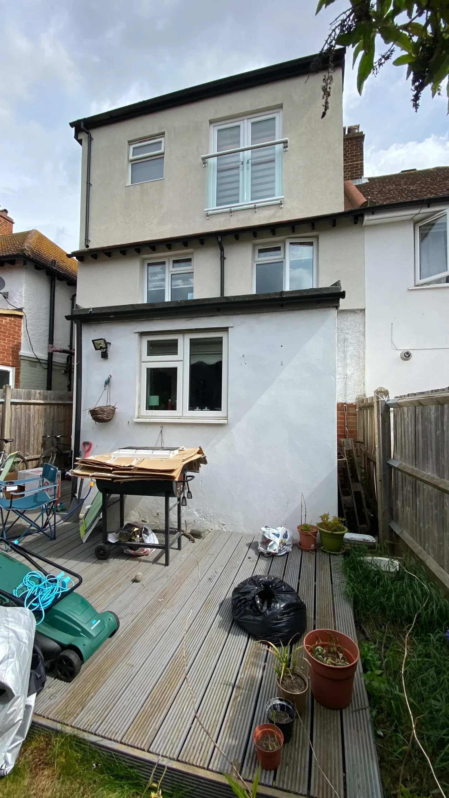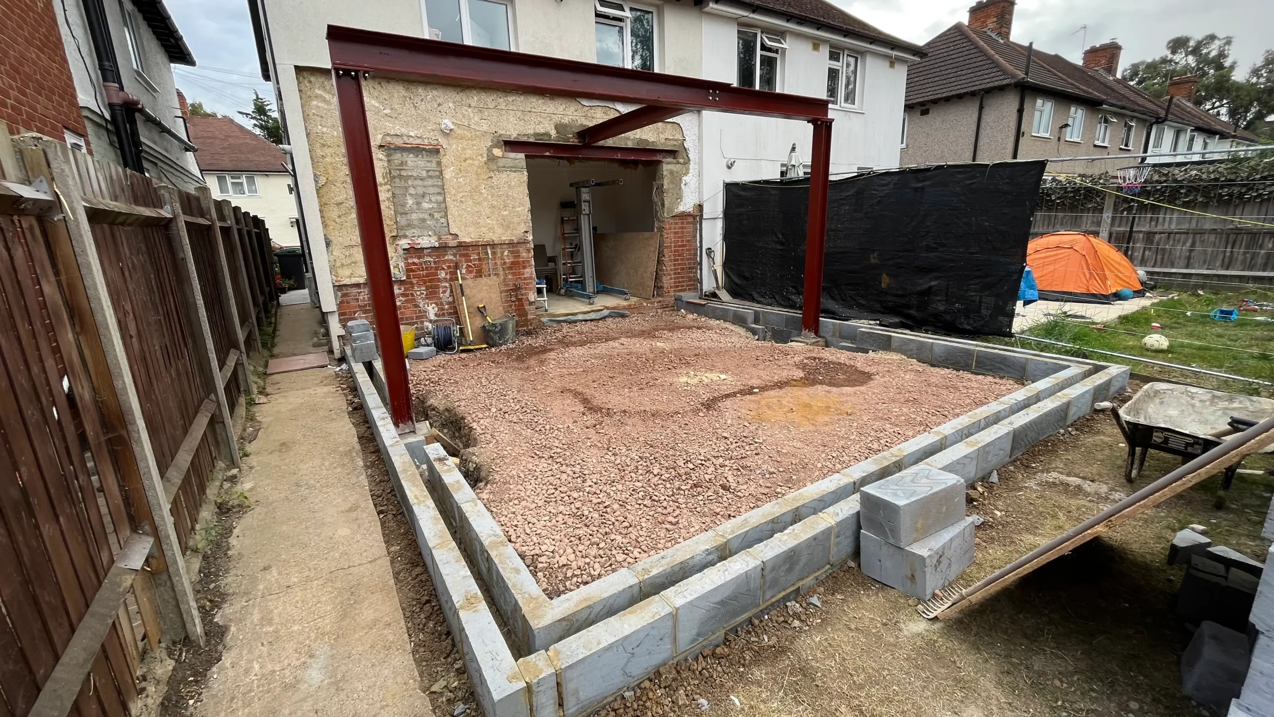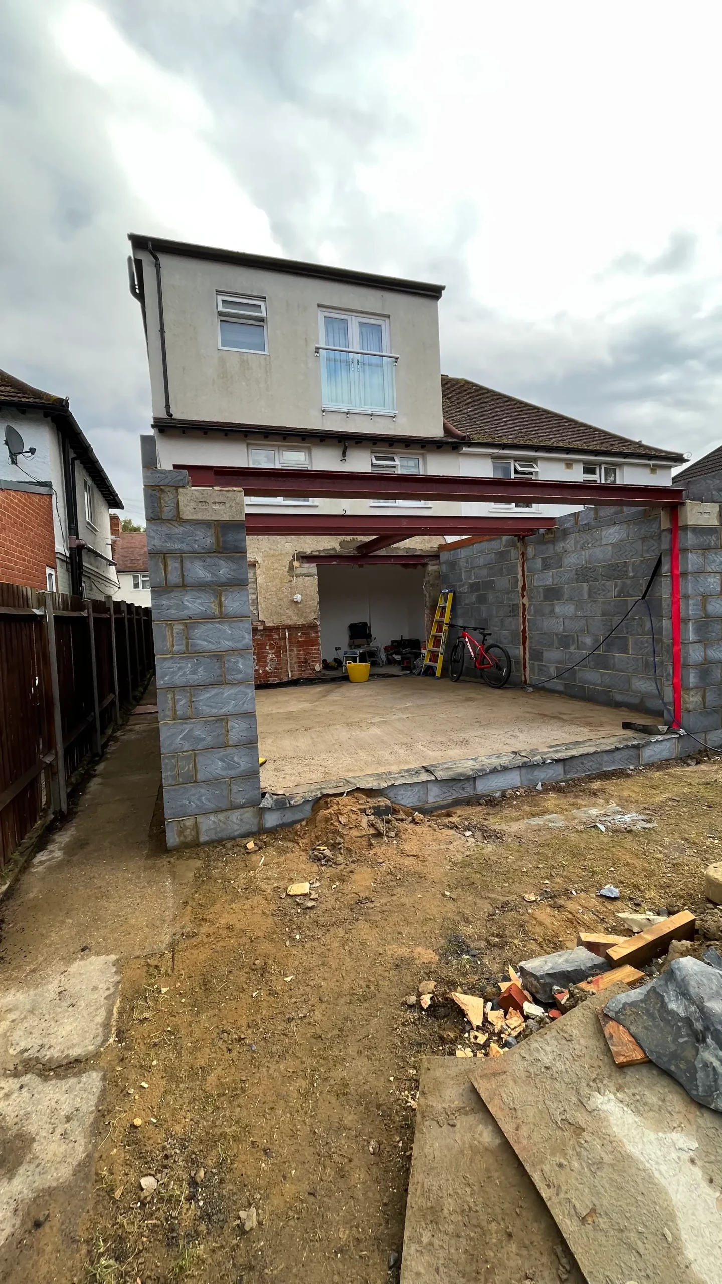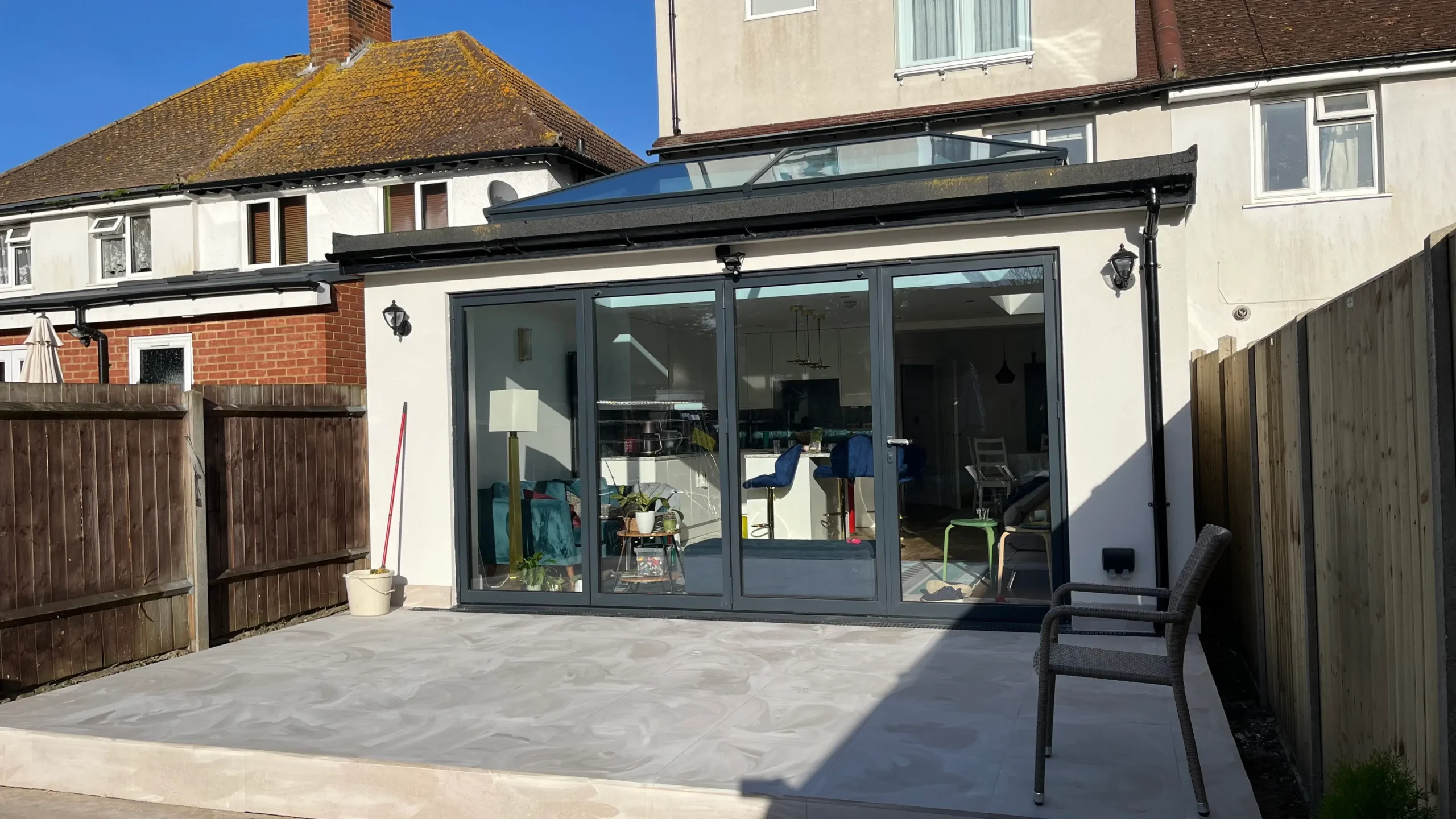 The works included construction of the rear extension and associated structural works, alongside full external works, comprising garden landscaping, new boundary fencing, and construction of a new patio.